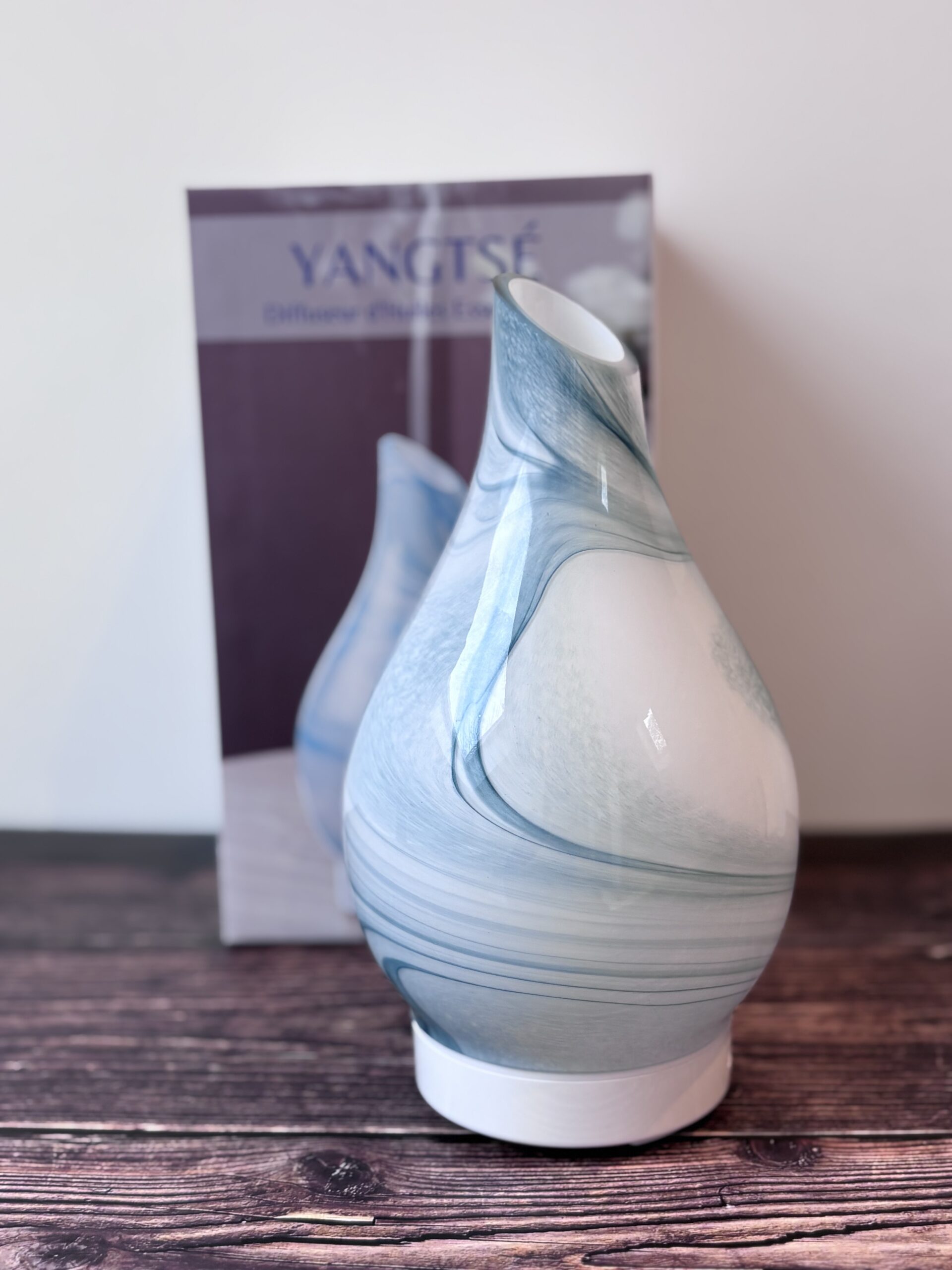 Tout en verre, le diffuseur YangTsé est Inspiré de la peinture de paysage à l’encre de Chine au pinceau. Les motifs sur le verre sont peints à la main, chaque diffuseur est unique.
